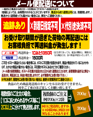 支払方法 【クレジットカード決済】【銀行振込前払い決済】 配送方法 メール便(常温)※メール便商品は、2個口以上のご注文の場合、同じ日に発送しても別々の日にお届けとなる場合がございます。